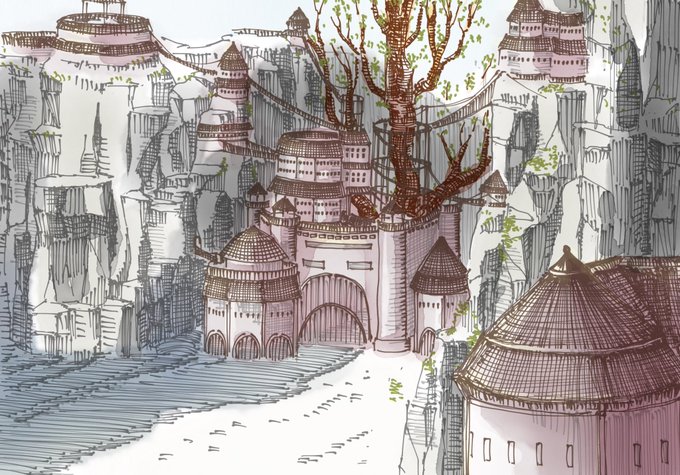 こういうのが好きシリーズ4つ貯まったのでまとめ 崖と建築物と空が好きなんだろう #イラスト #illustration #イラスト好きさんと繋がりたい #イラスト好きな人と繋がりたい #絵描きさんと繋がりたい #絵柄が好みって人にフォローされたい