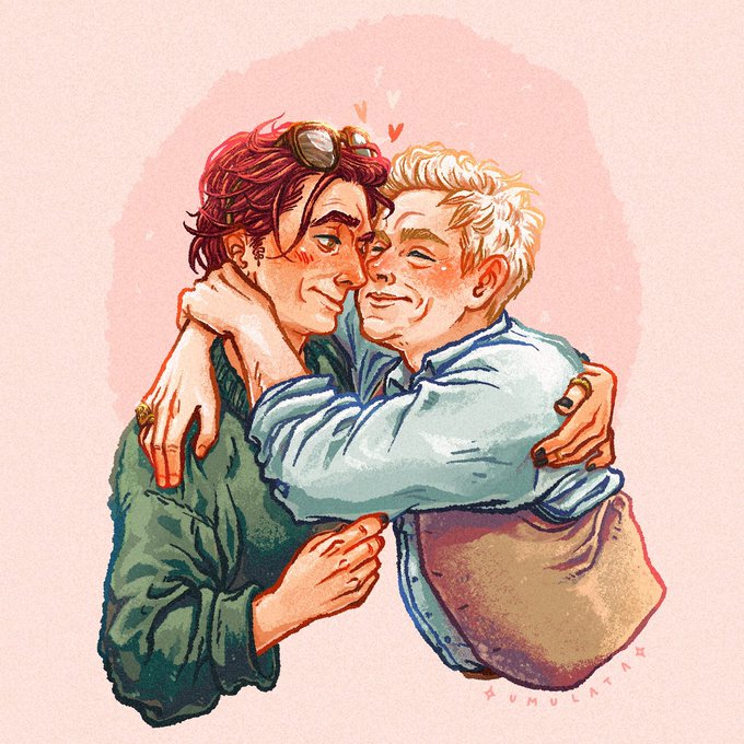 Oh, to be a priest secretly in love with the sweet priestly co-captain (??) of his parish and having all the pining feels 🍂 HAPPY BELATED BIRTHDAY to mah beautiful babus @alessiaciel 🎉 sobs I missed drawing this babe #GoodOmens #GoodOmensFanArt #Crowley
