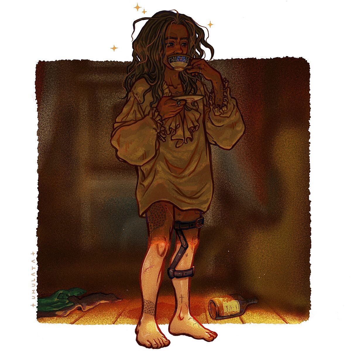 The Genital Pirate is enjoying a smutty fabliau he snatched from some bookstall- it’s way raunchier than he predicted and nope, better not sharing it with the crew. He could be persuaded to read it to his co-captain, though :B #stedebonnet #OurFlagMeansDeath #ofmd #OFMDfanart