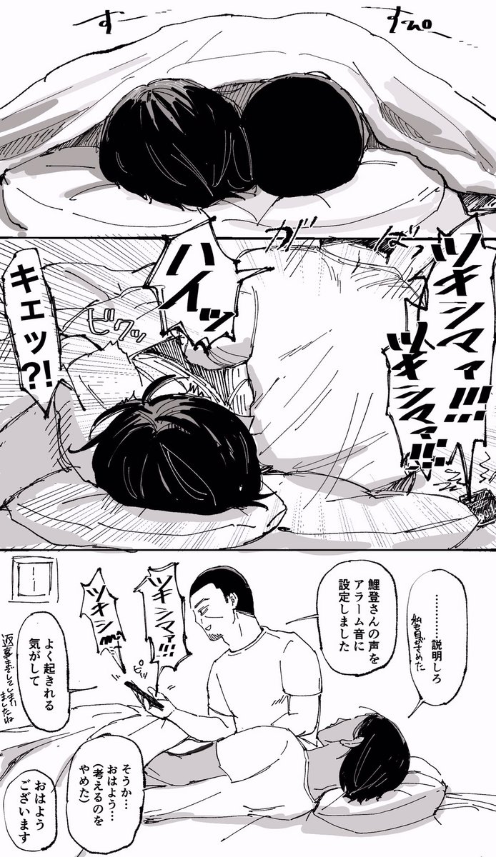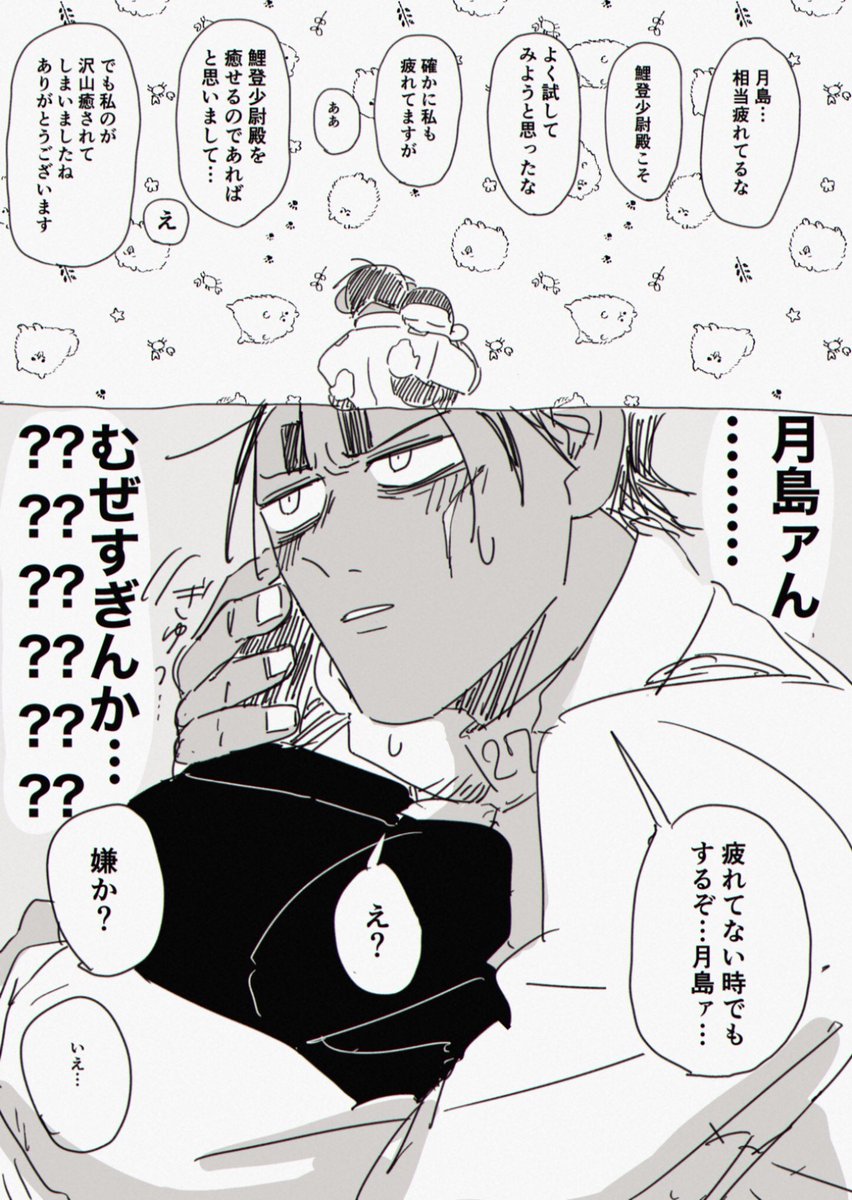 「ツキシマァ!!」って呼ぶ🎏の🌙視点ってこんな感じかなァ…って描いた鯉月(模写あり)