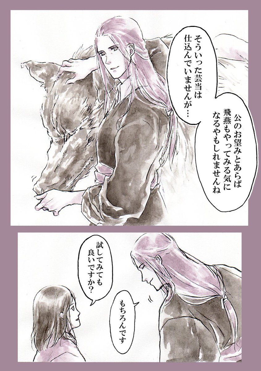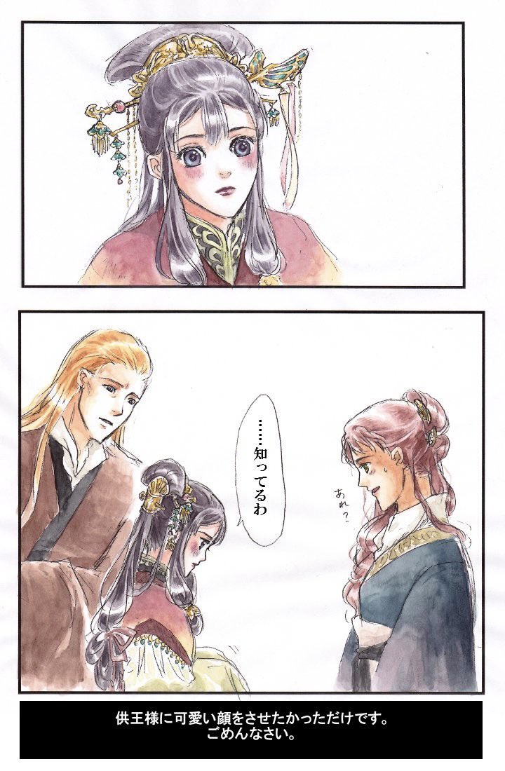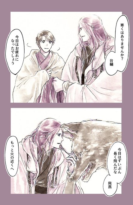 台輔と飛燕そして李斎 がっつり前回の続きだけど黄昏後で、これにてゆる締めです。 中日まで、くれぐれもご無事で! #中日至日に昇山しよう twitter.com/umuya21_12ayum…