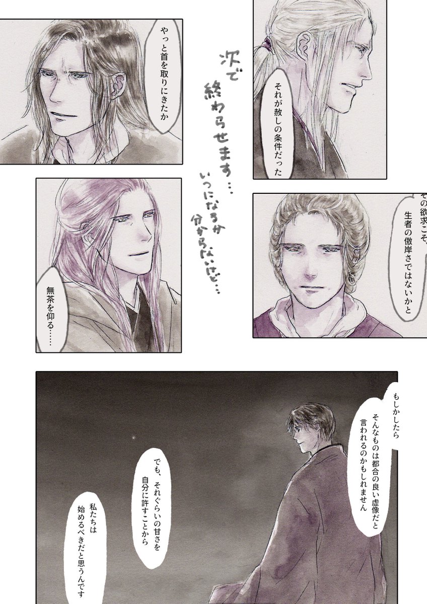 十二国記まんが【白虹、幽谷(中)】戴のはなし④ | アユム pixiv.net/artworks/97382… 白銀後に花影が阿選と面会する話です。 まえの李斎と花影の話の続きですが、ますます私のやりたい放題なので、なんでも許せる方むけ…… あと文字が多いです… 次で終わります🪦👼 twitter.com/umuya21_12ayum…