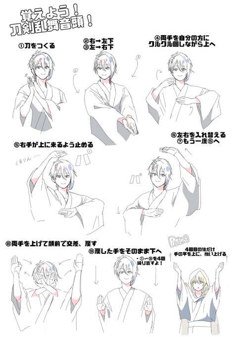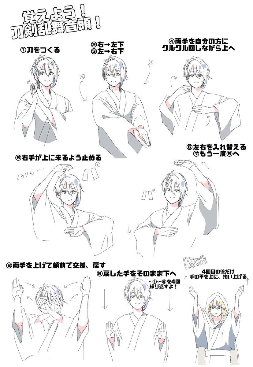 学生時代、ソーラン節の覚えが クラス1悪かった女が覚える為だけに 一生懸命描いた『刀剣乱舞音頭』の振り (多分合ってる筈)
