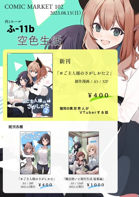 異世界人がVTuberはじめる創作漫画をC102 2日目(日)西1-ふ11bにて頒布予定です。 下記お品書きになります。 新刊の委託情報はこちら↓ メロン:melonbooks.co.jp/detail/detail.… とら :ecs.toranoana.jp/tora/ec/item/0…