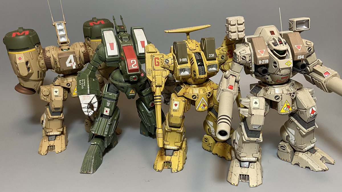 #おじさんとお兄さんの模型展オンライン デストロイド軍団 はい、私が最も好きなマクロスの最も好きなデストロイド軍団(^^) スパルタンも作らねばなりませんね。 集合写真、いわゆるダイダロスアタックな写真てなんとも締りがないんだよねぇ(^_^;) 毎度カッコよく撮れなくて萎えるw
