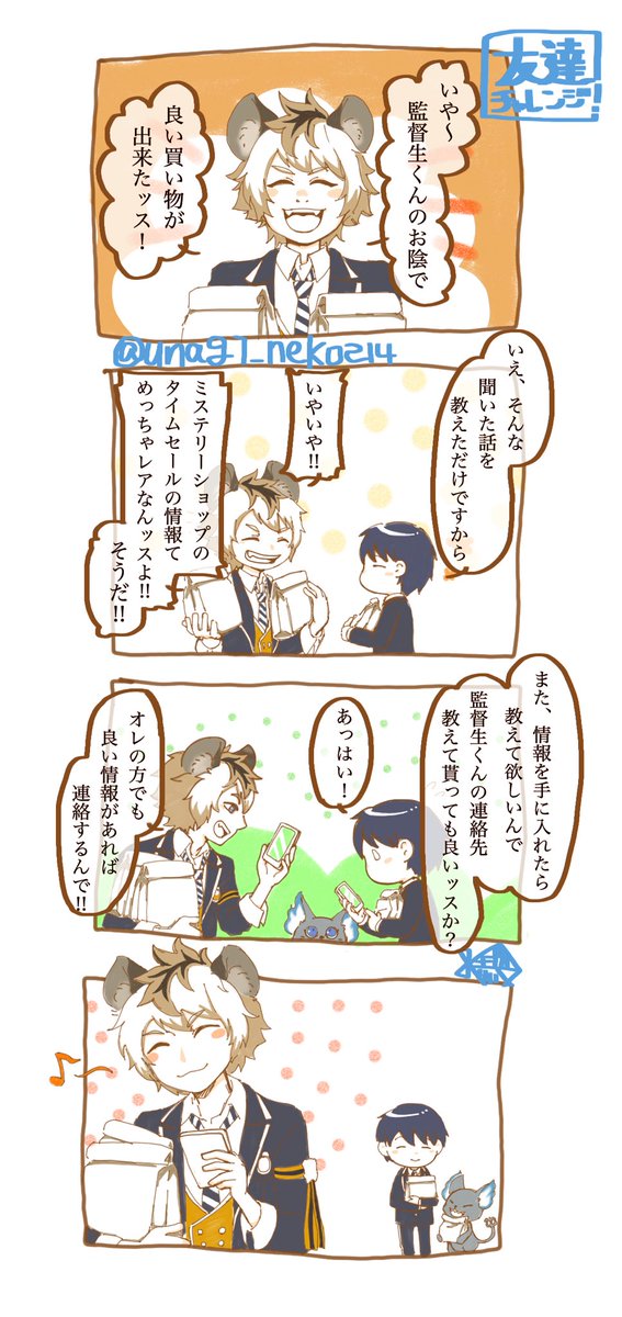 ネップリ登録しました。全部で十三枚。 ローソン、ファミマ〜10/7まで。 セブンイレブン〜10/6まで。 サイズを間違えて上下が少し切れました。グリ監漫画と一年五人の物は枠をつけているので、そのままでも大丈夫です。寮服五枚は縁あり推奨です(ローソン、ファミマ) #グリ監 #twstファンアート