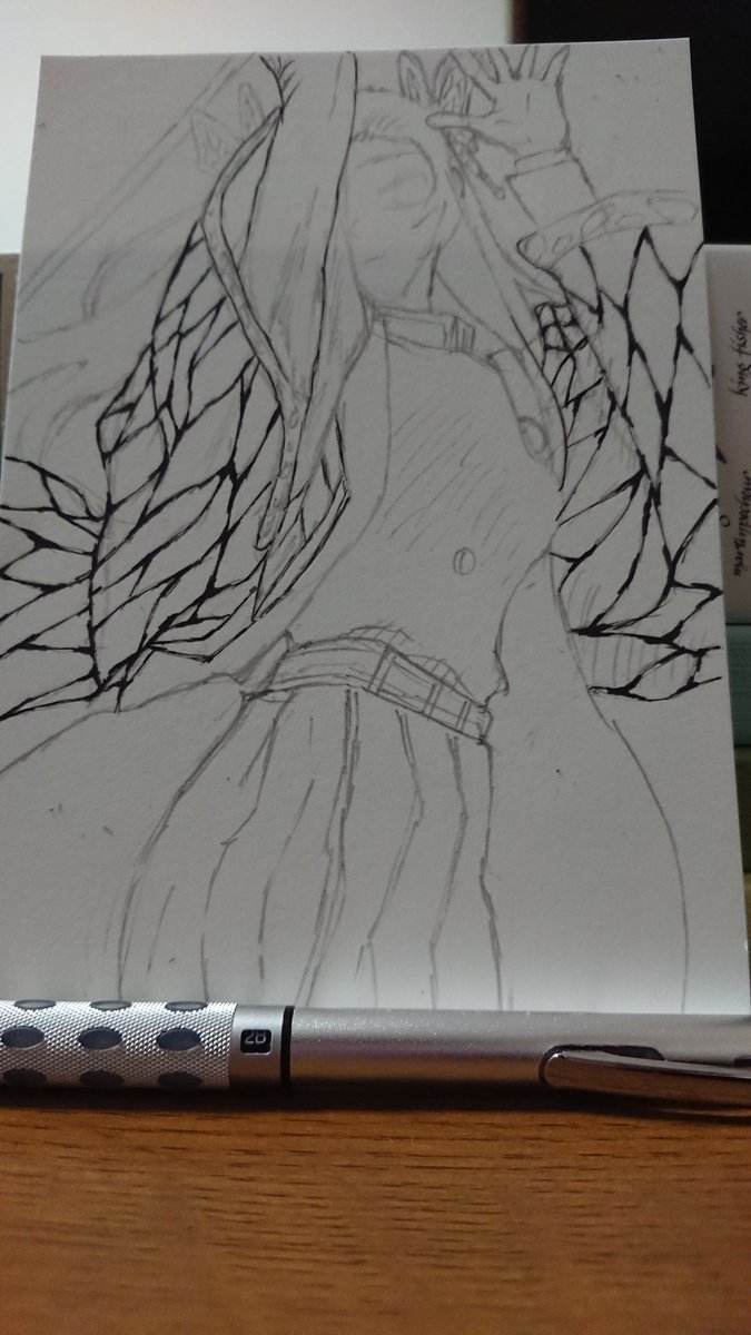 139日目 しのぶ先生描いてみた。 手がうまく描けないから枠からはみ出し。 ペン入れしてたらタイムアウトで中途半端に(/_;)/~~ 時間がほしいです。 目も離れちゃった、、、