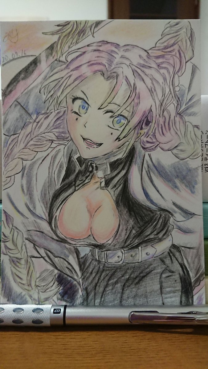 19 122 色塗り出来た119日目。 毛先のペン入れミスしたけど色塗り諦めたくなくて出来たー(*´ー`*) 全体的に暗めなような気がする(´Д`)光の為の白が難しくて白ポスカを買ってこようと思った日。 こぼれそうな胸を塗れたのが満足です! #イラスト #色鉛筆画 #鬼滅の刃 #甘露寺蜜璃 20/07/16 21:10