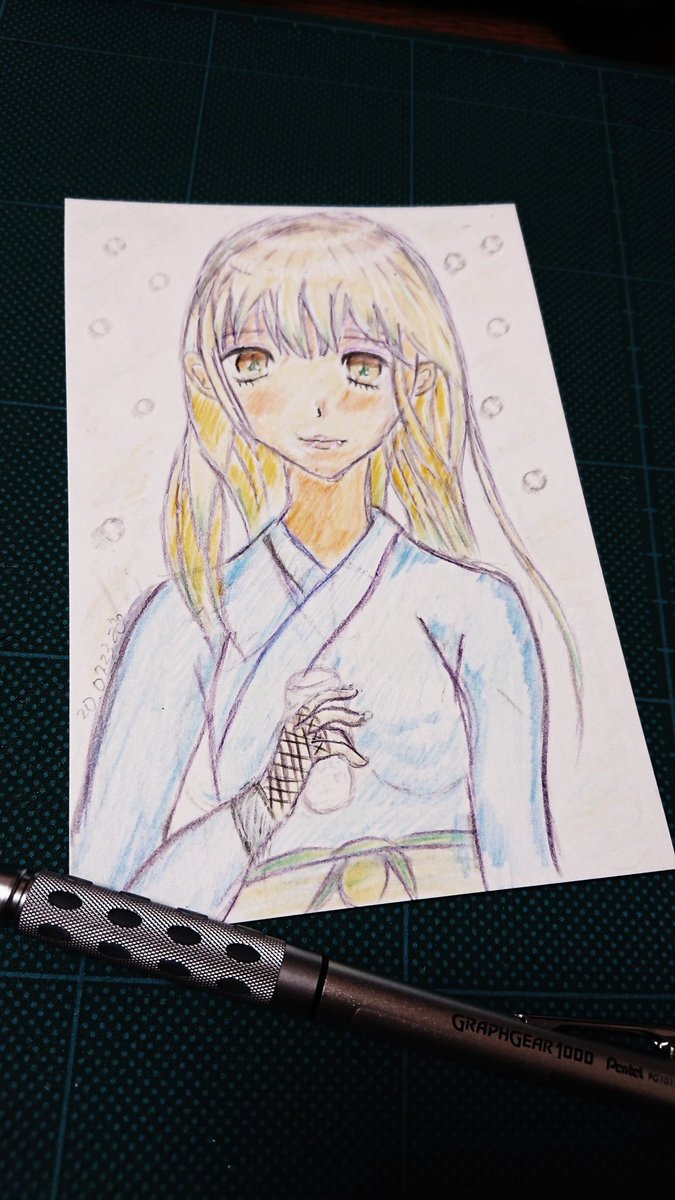 9 71 絵描き123日目。 珠世が人間の時になら穏やかで優しい目でキラキラしてたのかなって感じで、模写と色のアレンジしてみました。 オリジナルや二次創作へはまだまだ遠いけど少しずつ出来て来てるのかなって思いたい。 私は成長してるはず。 #色鉛筆 #鬼滅の刃 #珠世 #イラスト 描く時間もっとほしい 20/07/21 21:17