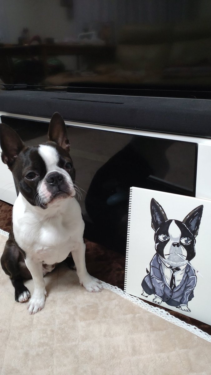 3 28 ボストンテリアのドットちゃん。 始めての制作依頼を受けて描かせていただきました。 凄く嬉しかったです。私の絵でも欲しいと言って貰えた。 感謝感激です。 後ろで寝てるのは、うちのあんこです。 22/04/23 01:33