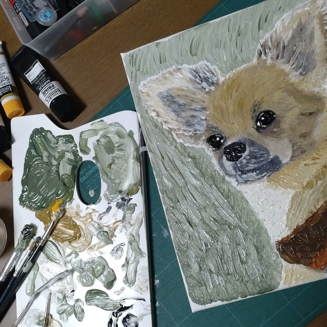 兄弟犬の源ちゃんを描かせてもらいましたー!そっくりに描くってほんと難しい。けど、仕上がった時の達成感は気持ちがよいし、貰ってくれて喜んで貰えると更に嬉しいわ!