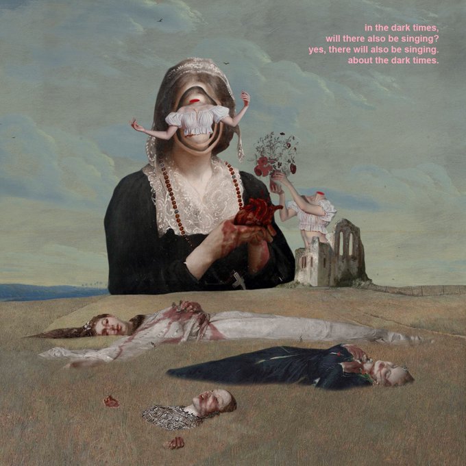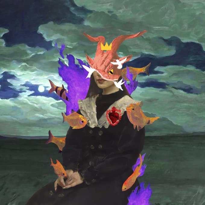 hello there! 🙇♀️❤️🔥 i'm arden and i'm a filipina collage artist that likes to take apart old postcards, paintings, and ephemera to illustrate the inner working of my mind! 👁️🐑 #ArtistsOnTwitter #artph 🌧️