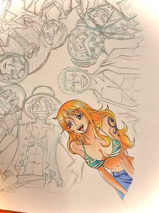 0 9 #模写 #コピック #ワンピース のーーーんびり色入れてやっと1人完成したー‼️😆髪が特に難しかった😇 22/07/17 23:39