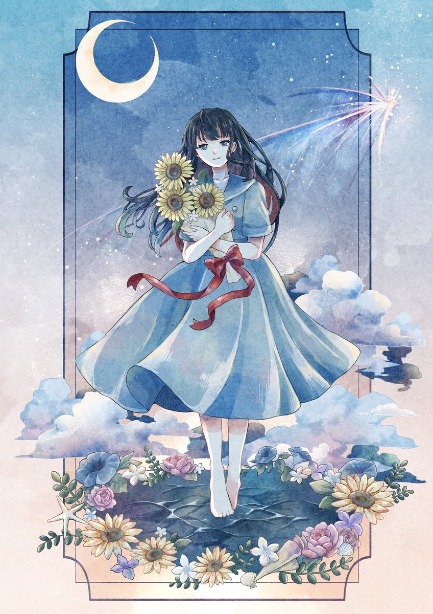 こちらのイラスト描かせていただきました🌙✨ こちらこそ素敵な御依頼ありがとうございました😭星空の下でティータイムな亜空あむり様、とっても楽しかったです…! twitter.com/muri2amuri/sta…