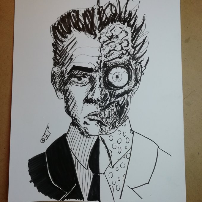 #inktober Day 29 #Injured. They don't come much more injured that two-face Harvey Dent. Physically and psychologically. A quick ink today as quite busy. #ink #Inktober2019 #art #dailyart #comicbook #DCComics