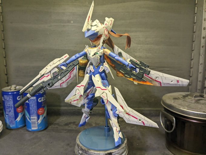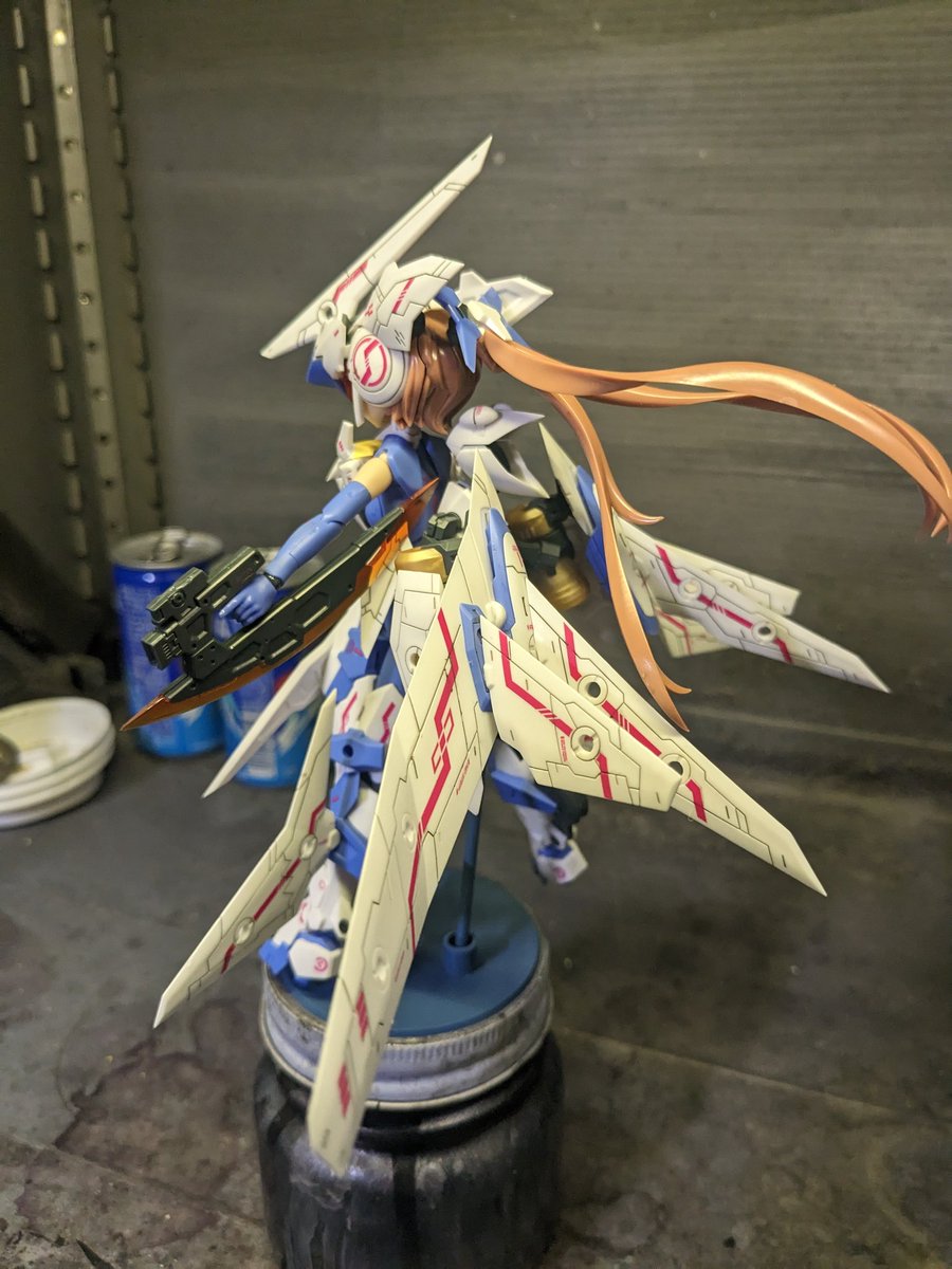 #メガミデバイス #SOLラプター 素体の腕やっちまいましたが、組み替えてとりあえず完成です(*´ω`*) デカールにトップコートだけの簡単仕上げです 武装やら翼の組付けが違うのはオリジナリティ…w