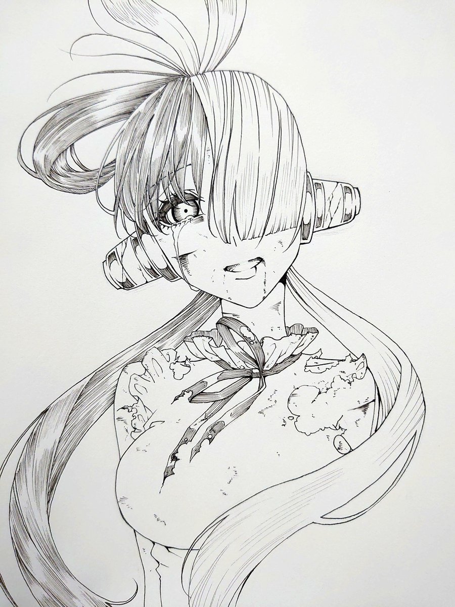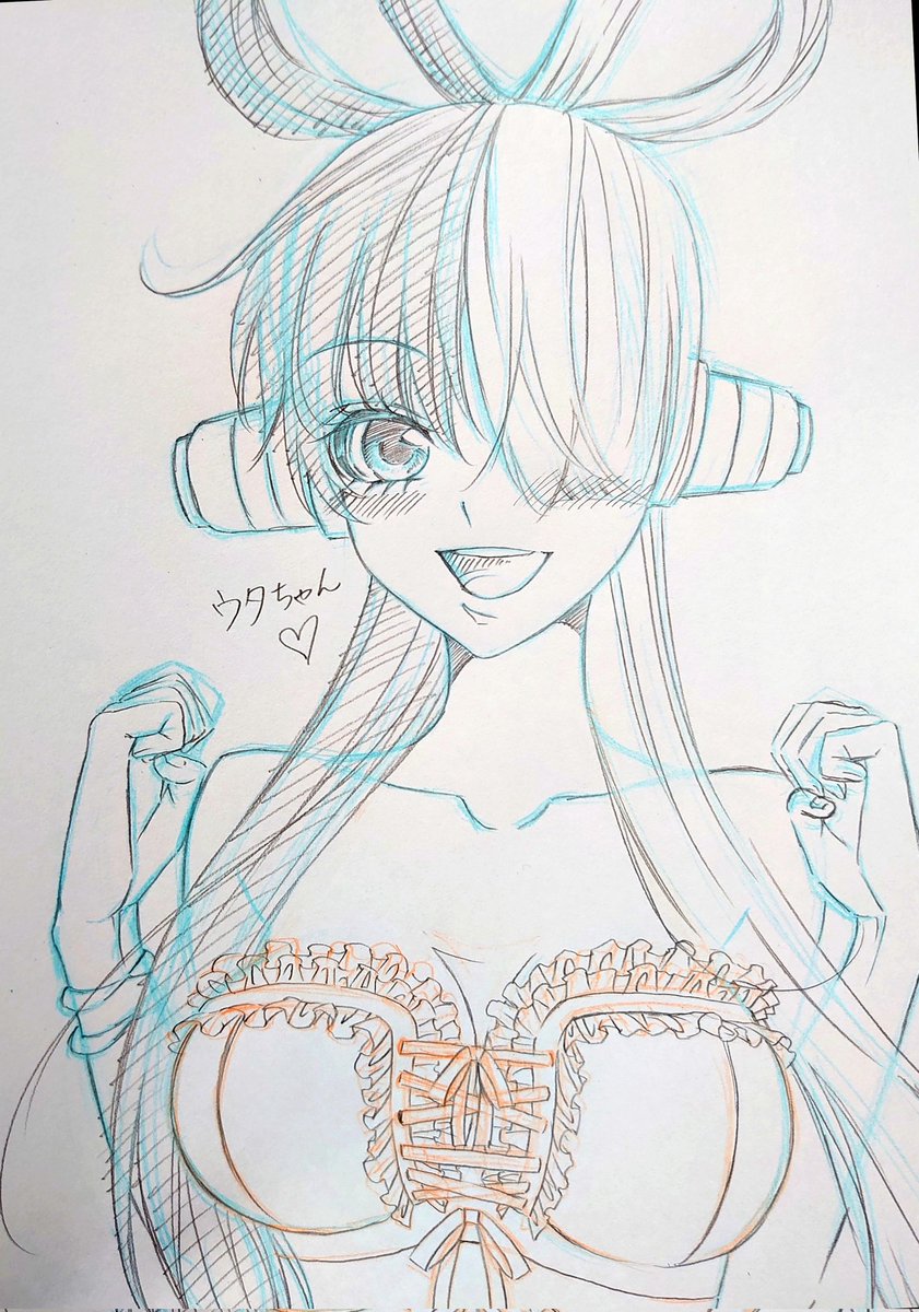BITさん(@Bit56382912Bit)のカラーイラストをアナログ&モノクロで描かせて頂きました! ありがとうございます😊 沢山の構図が描けて勉強になりました! #ウタ #ワンピース #アナログイラスト #絵描きさんと繋がりたい #絵描きさんと仲良くなりたい