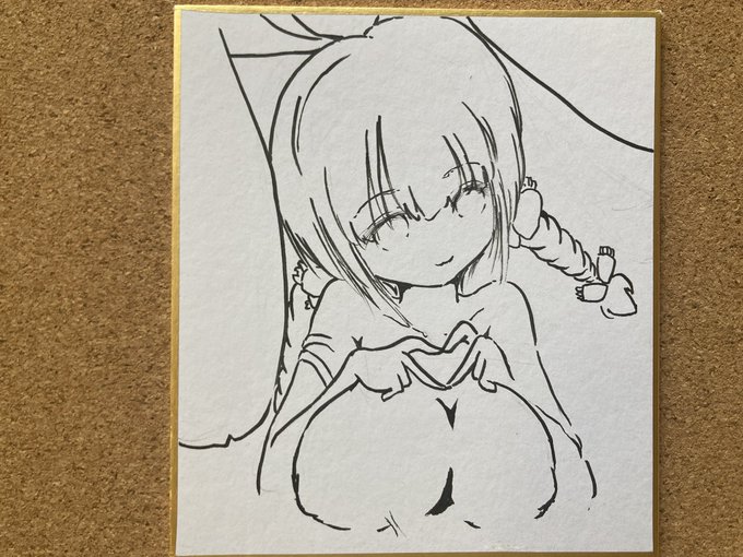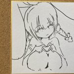 1 1 夏コミおまけ色紙絵描きしてます…(*´-`)_φ #c102 #アナログイラスト 23/06/26 18:42