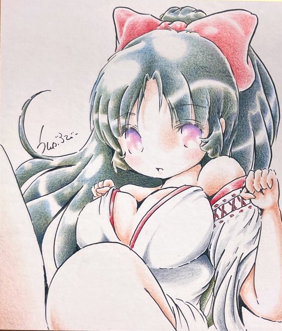 1 5 巫女ちゃんもっとたくさん描きたいです♡_φ(*´ω`*) #アナログイラスト 23/06/21 21:12