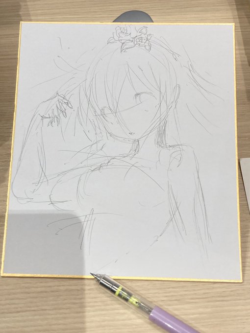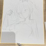 夏コミおまけ色紙絵描きしてます…(*´-`)_φ #c102 #アナログイラスト