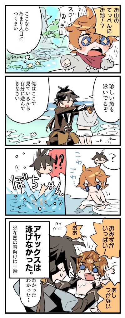 #ZC_1hDW @ZC_1hDW 鍾タルワンドロ、二次創作 「素足」夏の稲妻旅行中を描きたかった、などと供述しており…。なんか足湯に見えますが、涼んでるところです