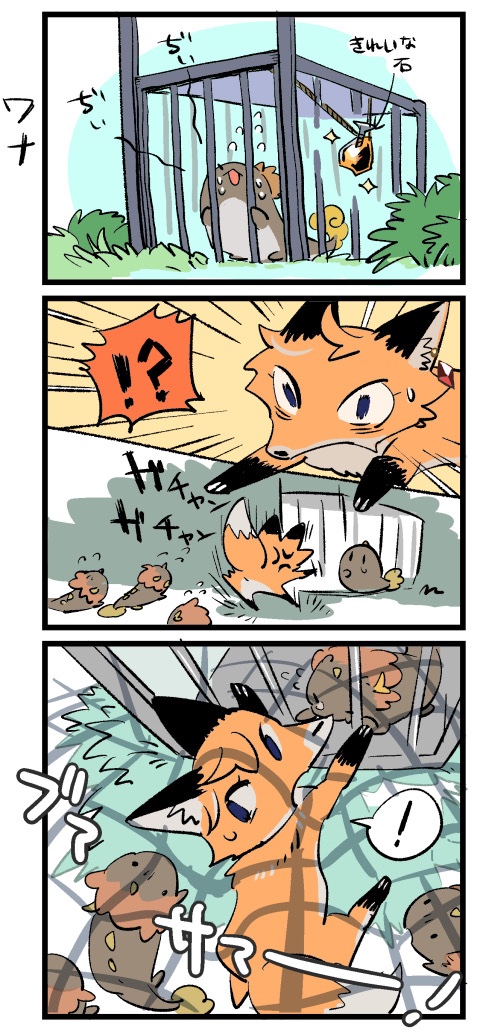 ↑の続きの🐉🦊鍾タルちゃんファミリー。 チビちゃんが捕まってしまった!😢かわいそうなチビちゃんの運命は!(そして宝とう団の運命は…