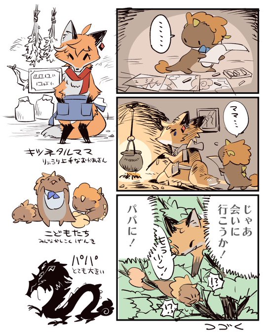 小休止。鍾タル🐉🦊のファミリーらくがき