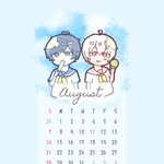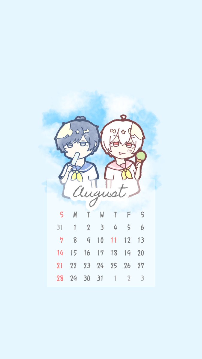 7 33 ( 'ω'o[ 8月のカレンダー ]o 真夏のそらまふ🍧🐳🌻 #カレンダー #そらるの絵 #まふあーと (ご自由にお使いください🫶) 22/08/08 12:00