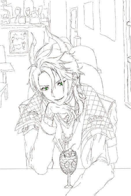 Oga's new outfit is just too hot i must make a quick sketch ah there's some rocker and playboy-ish vibe i-i-i i can't- will try to finish soon while cryin' in Oga hotness my eyes burn omg 🐃 #オウ画