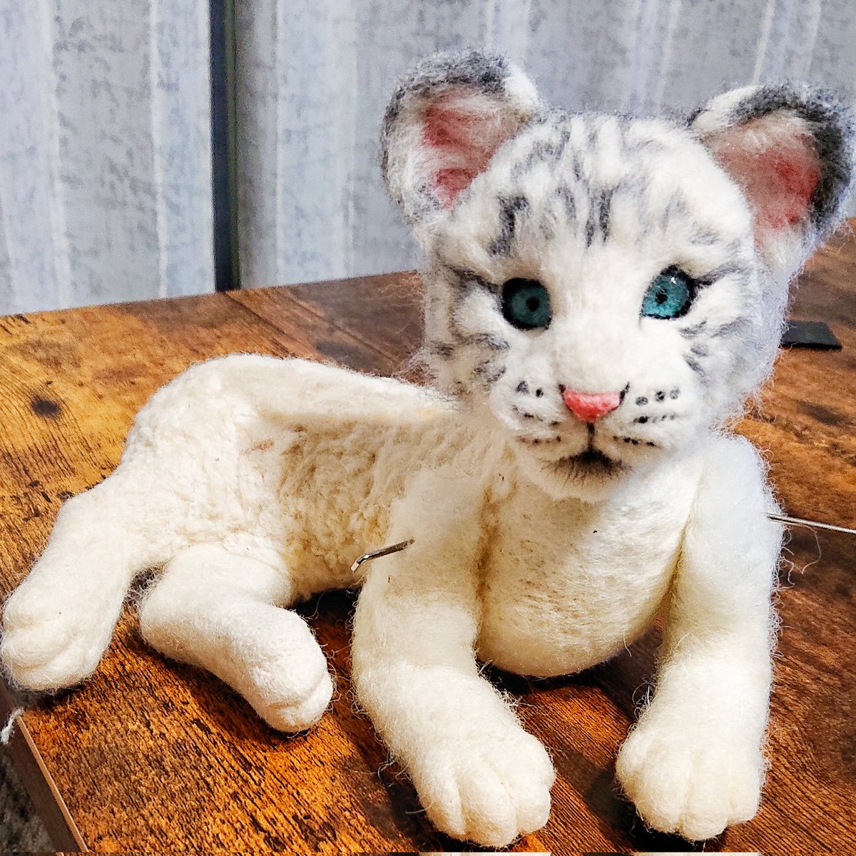 ちょうど2ヶ月かけて完成🐯 途中、冬休みあって制作お休みしてたけど😅 なかなかの大きさで頑張りました😂 今回、ヤフオクに出そうかなぁっと思ってます! #寅年 #ホワイトタイガー #羊毛フェルト #artdoll