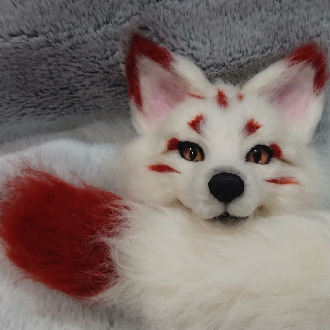 完成! かなり大きなこになりました😂💦 この間作った虎も私のなかではかなり大きかったのですが、それよりも大きい😆 インスタの700人記念に1円オークションで出そうと思います😊 先に顔作ってた子と一緒に撮りたいのでまだまだ先になりそうですが💦 #artdoll #羊毛フェルト #お狐様