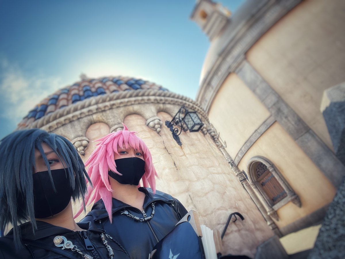 10/26はランドでシオン×アクセルでした! シオンちゃん難しかった😭 風が強くて、固めたウィッグが一瞬にして 崩れてしまった😇やはり女装は難しい、、 #Dハロ仮装2022 #キングダムハーツ