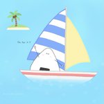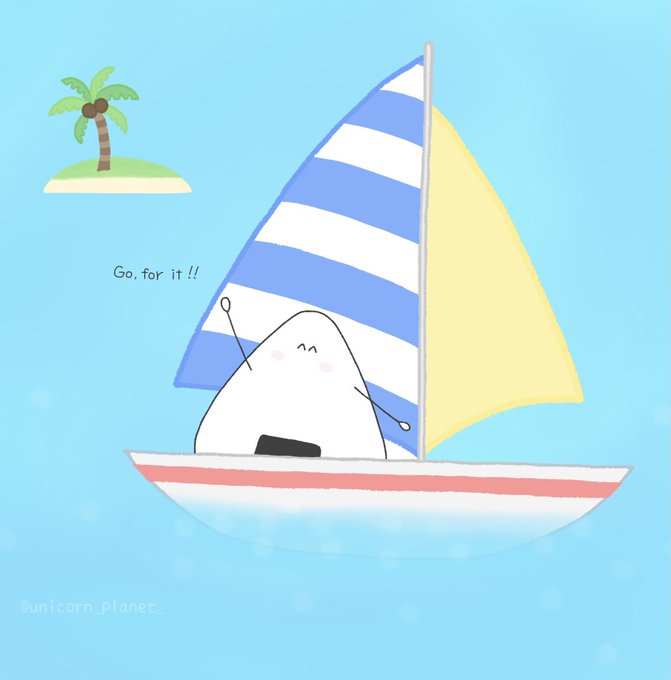 ヨットに乗り込んで南の島を目指すおにぎり!⛵️🏝 水平線の向こう側に行ってみたいと思っていた、子どもの頃を思い出します🐚 #ゆるいイラスト #ユニプラ絵 #イラスト #イラスト好きな人と繋がりたい #illustration #夏の創作クラスタフォロー祭り #絵柄が好みって人にフォローされたい