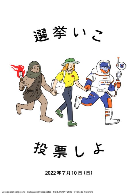 投票ポスターの制作に参加しました!できるだけカジュアルに、身近な人と話すきっかけになれば嬉しいです。 過去と未来で仲良く手を繋げるような社会になれますように🧔🏽♂️🤝🏽🤖 voteposter.cargo.site #投票ポスター2022 #参院選2022