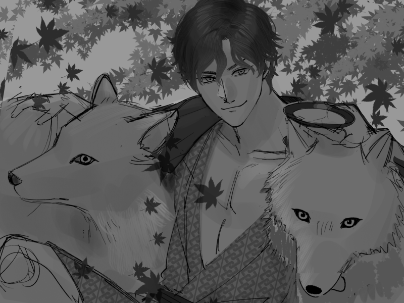 #皆さん線画と塗った後を見せてください whitemistさんで描かせて頂いたお仕事のやつです~🐶🐺