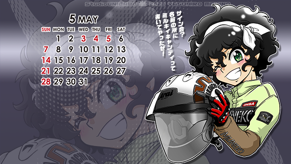 2023年5月の壁紙カレンダー配布(FREE) 公式ブログからご自由にお持ち帰りください。 【Studio UNILABO】 blog.goo.ne.jp/unilabo/ 現在発売中の 「ヤングチャンピオン烈」 amzn.to/41yJKti に 『ばくおん!! ~天野恩紗のニコイチ繁盛記~』 Kawasaki ninja回 掲載中です! twitter.com/unilabo/status…