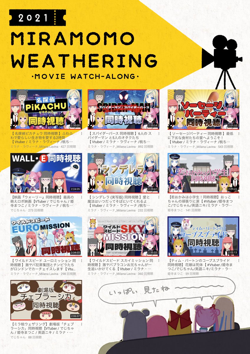#ミラ桃ウェザリング チェブラーシカ同時視聴の可愛かったとこを少々… あと個人的に作りたくて今年のミラ桃ウェザリングの同時視聴まとめてみました(抜けてるやつあったらすみません!!!!!!) ミラ桃ウェのおかげで見れた映画いっぱいあるぞ〜!ありがとう〜! 来年もやってくれ