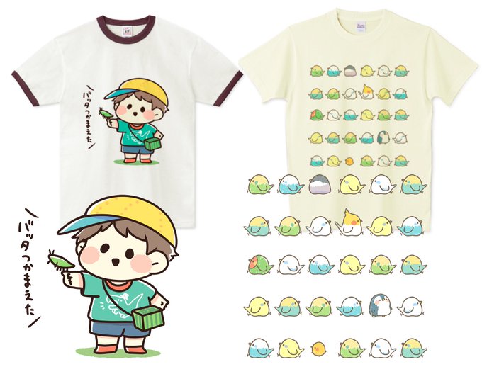 20 31 【今週の新作Tシャツ】 二点新作追加しました。 バッタつかまえた少年と鳥だらけ!バッタがカッコいいです。 ttrinity.jp/shop/unimaru/ 21/07/03 19:53