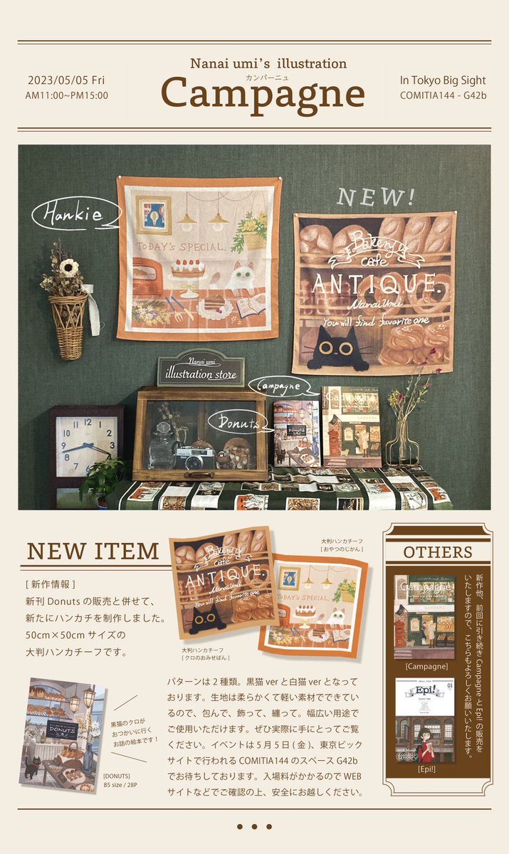 新刊Donutsと併せて大判ハンカチ2種を制作してみました〜! こちらも5/5のコミティアで販売いたします。自分で言うのも何ですが可愛い仕上がりです☺️ぜひ実物を見にいらして下さい〜 #COMITIA144