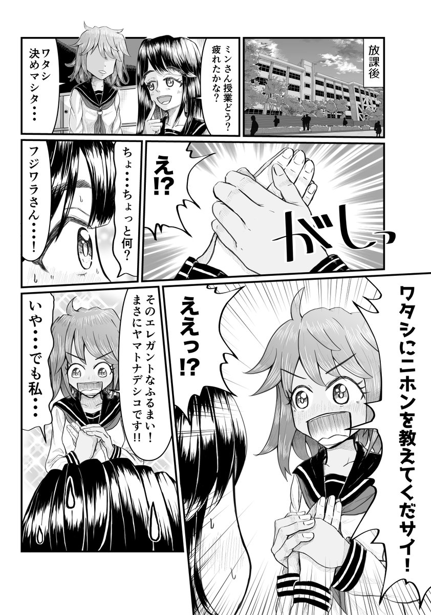15 48 「ミンさんはサムライになりたい」(4P部門) 南の国からやってきた女の子がサムライになる方法を教えてもらう話です #うぇぶり新人賞 #漫画が読めるハッシュタグ 21/08/31 21:50