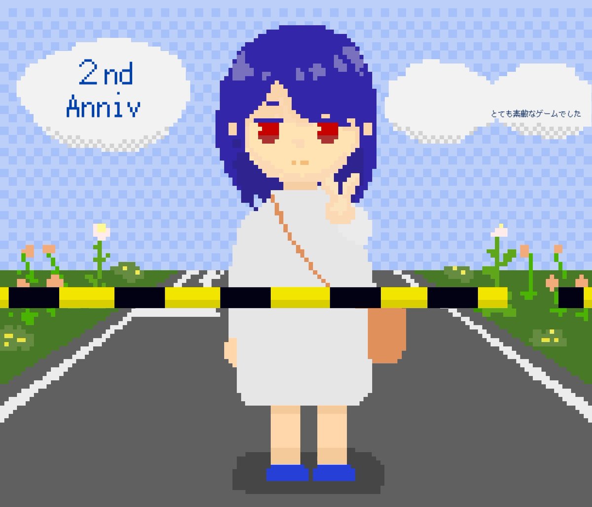 大好きな #アンリアルライフ が2周年ということでファンアートが描きたくなったので描きました。 5月の麗かな記念日に、ハルさんは踏切を渡ってまた一歩踏み出していくんだろうな、って。 #ドット絵 #dotpict #pixcelart twitter.com/clrfnd/statu…