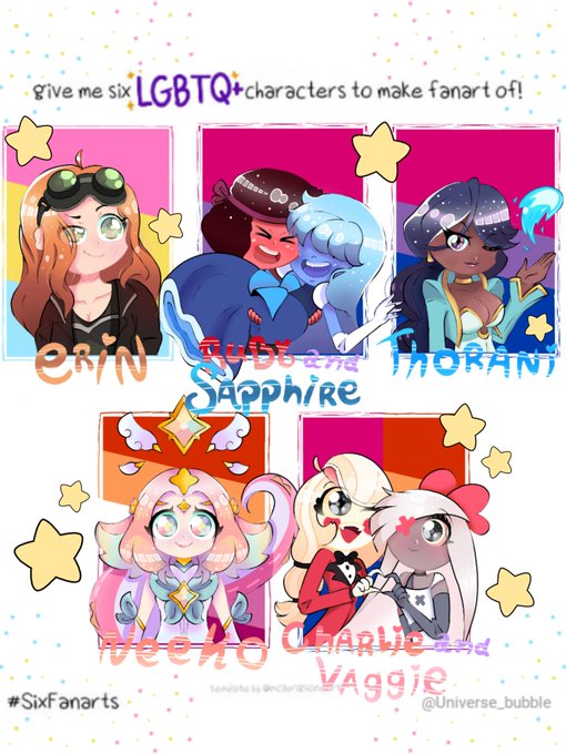 Six fanarts ❤+🔁=💖 #desconjuraçao #StevenUniverse #lol #HazbinHotel #SixFanarts #SixFanartsChallenge