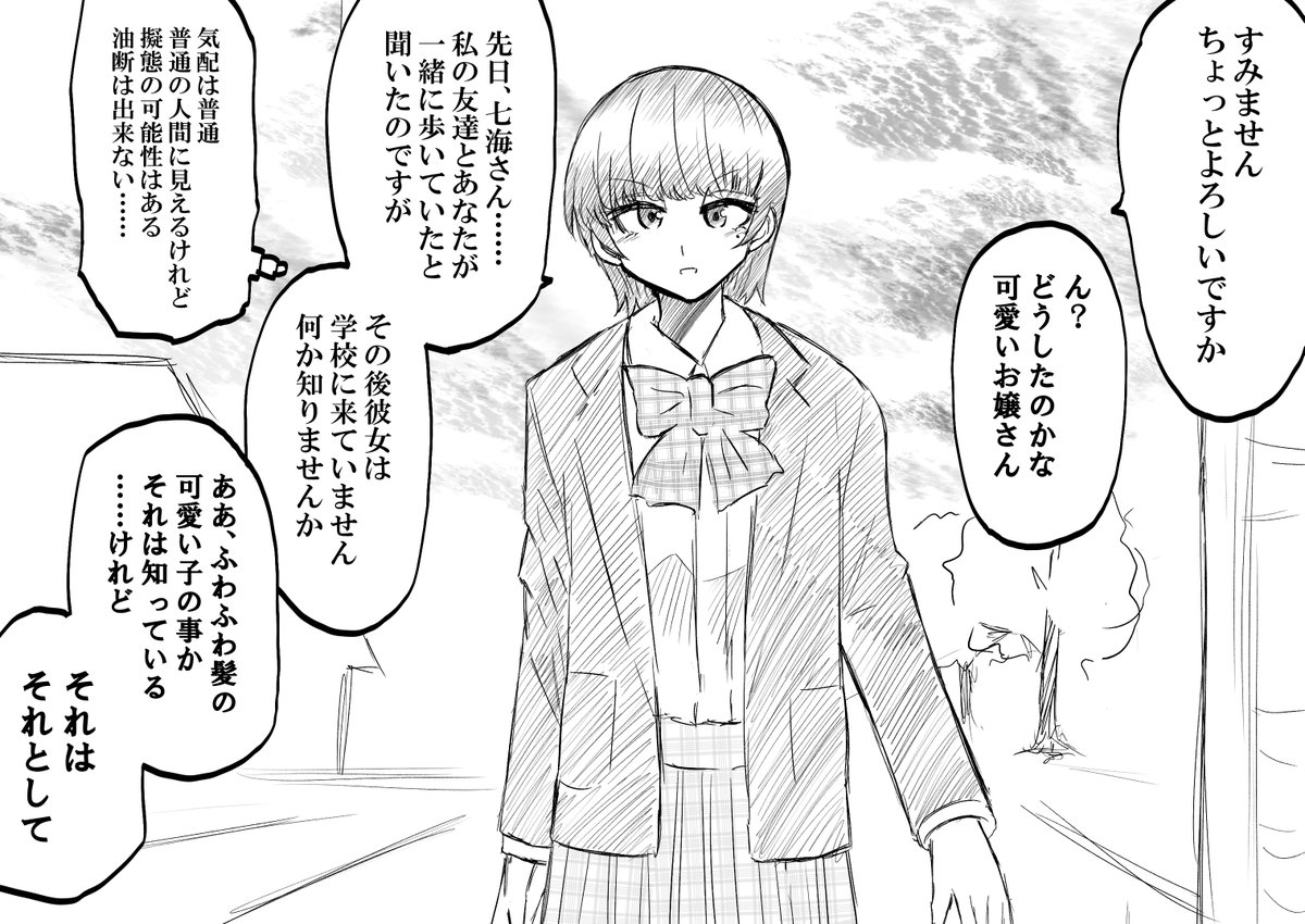 2 8 黒井恋ちゃん まあ可愛いよね 最初は『クッソ性格悪い女描いてやろう』と思って書き始めたんですけどなんかどんどん可愛くなってしまった というか最初は普通に敵として出して終わり(グレイみたいな存在)としてしか考えてなかった気がしますね でも思いついちゃったから描きました 22/03/31 01:32