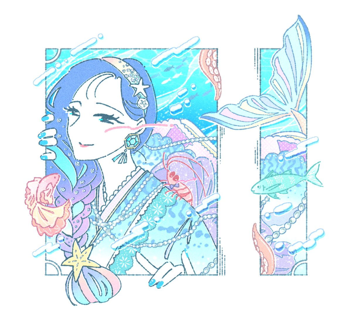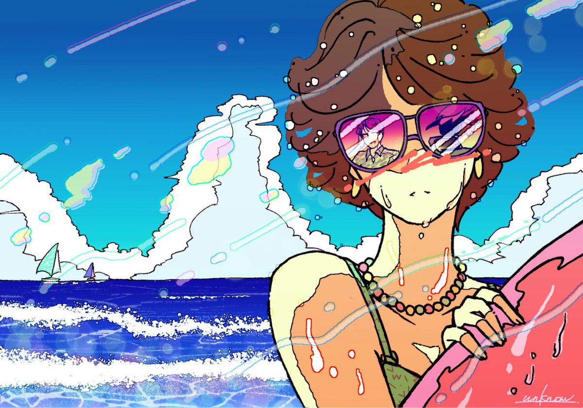 GENSEKIさんきっかけで描いたことないのはじめて描いたと思う、涼し〜!💙🔵🔷 #今月描いた絵を晒そう