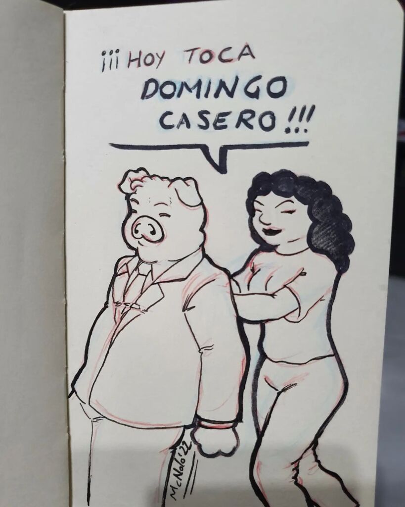 Dia 2. El clásico preferido de @marimar_neva y del mismísimo Satán, @daninpi . Los domingos caseros. Aunque alguien parece que no se quiere ir. #inktoberspain #inktoberespaña #inktober #inktober2022 #inks #tintas #tinta #micronpigma #cerdoholmes #inkt… instagr.am/p/CjOIzqTK6hu/