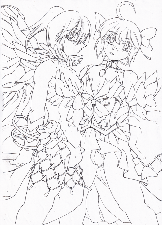 #皆さん線画と塗った後を見せてください 過去ので線画のこってるやつ。 あと今月ほぼ絵描いてないから過去絵でのりきる