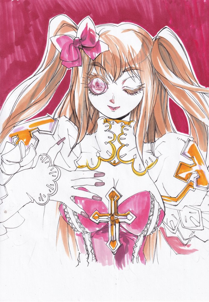 #今月描いた絵を晒そう じつは途中で腕の病気(今は治った)になったので握りこぶしで固定して描いてた。