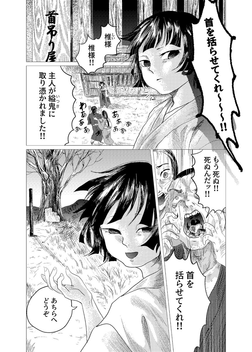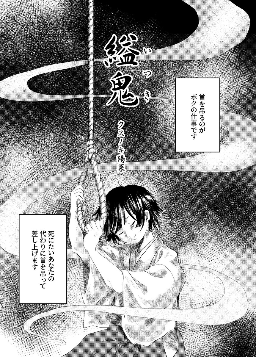 創作漫画『縊鬼』 首を括らせる妖怪「縊鬼」と、縊鬼に憑かれた人の代わりに首を括り続ける少年の怪奇短編。 #マンガが読めるハッシュタグ アンソロジーに寄稿させていただいた作品です! 許可もらったので掲載します。 (1/5)