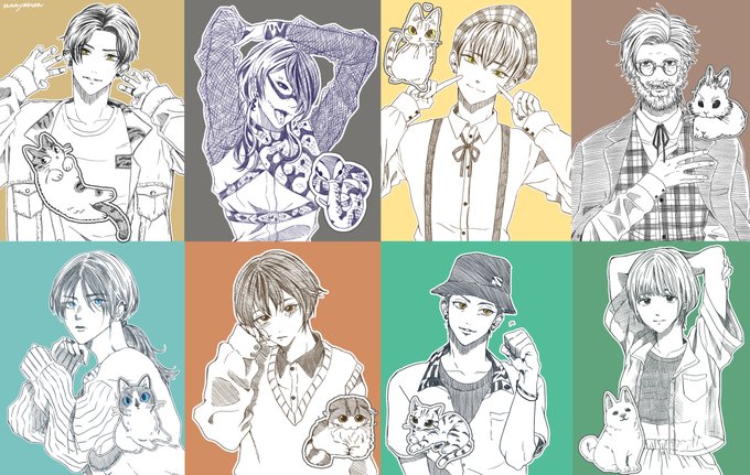 #フォロワーさんのペット擬人化お絵描きチャレンジ ほんと無茶苦茶お待たせしてすみません🙇♂️!! 8人分楽しく描かせて頂きありがとうございました~🥰 一応リプ欄に文字無しver載せてます🐶🐱🐰🐍