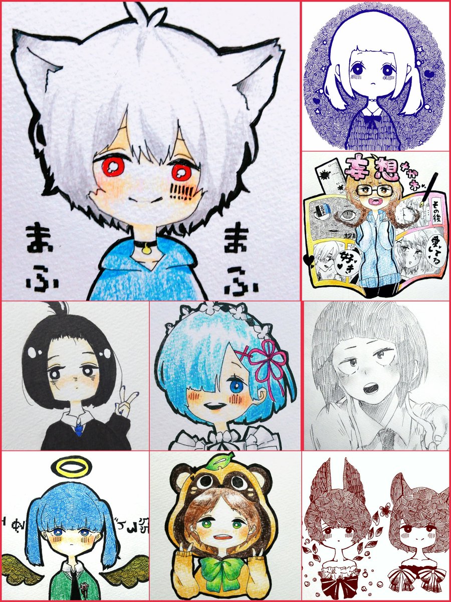 私の絵まとめw 絵柄が全然違うなぁw #落書き #私の絵嫌いじゃないよむしろ好きって言ってくれる優しい人RT
